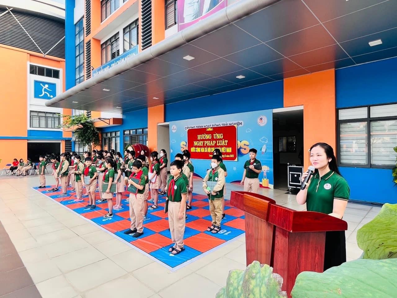Vào 8h00 sáng ngày 7-11-2022, Trường Tiểu học Đoàn Khuê đã tổ chức các hoạt động “Hưởng ứng Ngày Pháp luật Nước CHXHCN Việt Nam” trong tiết sinh hoạt dưới cờ với sự hưởng ứng của 100% CBGVNV và HS toàn trường.