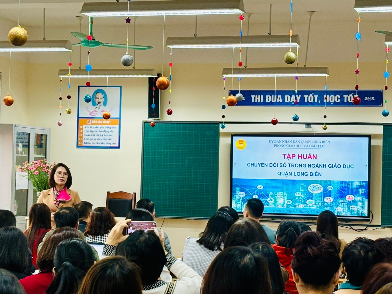 Đồng chí Đào Thị Hoa – Trưởng phòng Giáo dục và Đào tạo quận Long Biên phát biểu tại buổi tập huấn