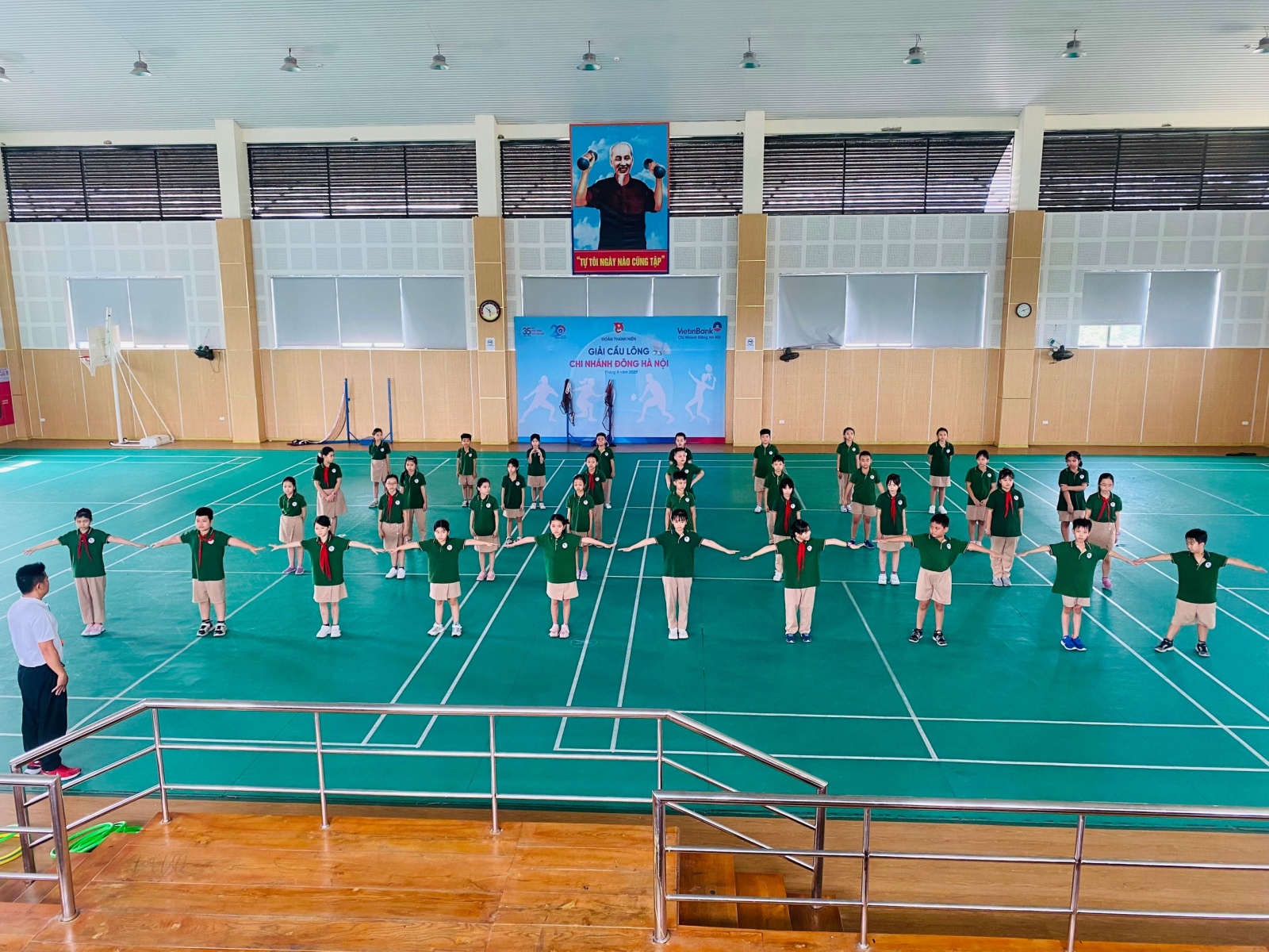 Học sinh bắt đầu giờ học với hoạt động khởi động – bài thể dục phát triển chung theo lớp và theo nhóm, đảm bảo trạng thái cơ thể tốt nhất để chuẩn bị cho bài học.