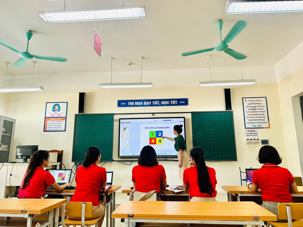 Để các buổi tập huấn đạt hiệu quả cao, BGH nhà trường đã chia thành 4 tổ tập huấn dưới sự hướng dẫn của giáo viên đã có kĩ năng và kinh nghiệm sử dụng Bảng tương tác. Qua buổi tập huấn giáo viên nhà trường đã có những kĩ năng cần thiết để xây dựng những bài tập, trò chơi giáo dục trên phần mềm ActivInspire.