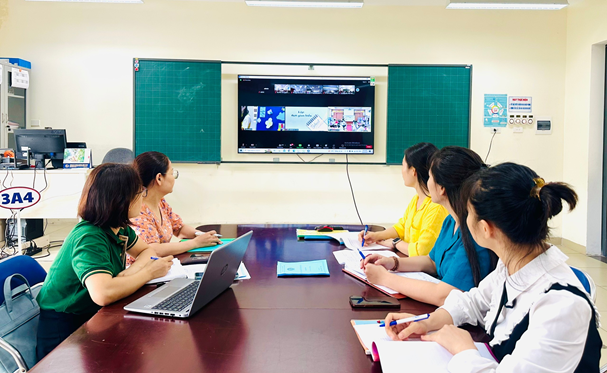 Sau đây là một số hình ảnh giáo viên trường Tiểu học Đoàn Khuê dự tiết chuyên đề trực tuyến cấp Thành phố
