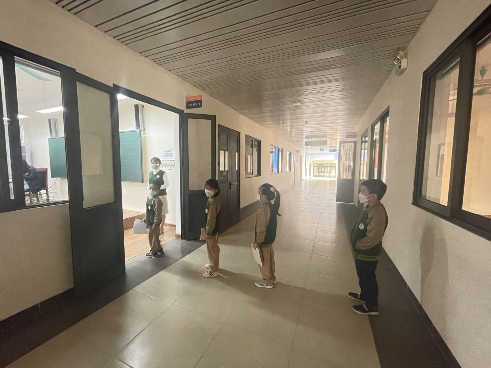 Đến với cuộc thi “Trạng nguyên Toàn tài” cấp Tỉnh, trường Tiểu học Đoàn Khuê tổ chức song song hai hình thức trực tiếp và trực tuyến (đối với thí sinh hiện đang là F0, F1 điều trị tại nhà). Trước ngày thi, Ban giám hiệu nhà trường đã lên kế hoạch thi chi tiết, bố trí, sắp xếp phòng Tin học, phòng chờ dành cho PH, kiểm tra máy móc, thiết bị, đảm bảo đường truyền tốt nhất khi thí sinh tham gia cuộc thi tại trường. Với những thí sinh tham gia bằng hình thức trực tuyến, GVCN đã cẩn thận lưu ý tới từng phụ huynh về không gian thi, âm thanh trong lúc thi, và các thiết bị công nghệ kết nối cẩn thận, đảm bảo an toàn và lâu dài cho học sinh trong suốt quá trình làm bài thi: Nguồn điện, mạng internet, tài khoản dự thi. Đây cũng là nhiệm vụ, trách nhiệm và việc cần làm của phụ huynh trước giờ thi. Để tránh những sự cố đáng tiếc và tạo sự khách quan tránh ảnh hưởng đến bài làm của các em, nhà trường cũng yêu cầu học sinh chuẩn bị 02 thiết bị dự thi, trong đó 01 thiết bị tham gia phòng giám sát (điện thoại thông minh/Ipad/máy tính cá nhân có camera, micro và cài đặt phần mềm Zoom), 01 thiết bị tham gia thi (máy tính cá nhân/Ipad có kết nối Internet). Các thiết bị này giúp thầy cô giám thị quan sát được toàn cảnh học sinh ngồi làm bài và màn hình thi của học sinh trong suốt thời gian làm bài thi. Thiết bị cần bật mic, camera và đặt góc quay chếch khoảng 45 độ từ phía sau bên trái hoặc bên phải của học sinh.