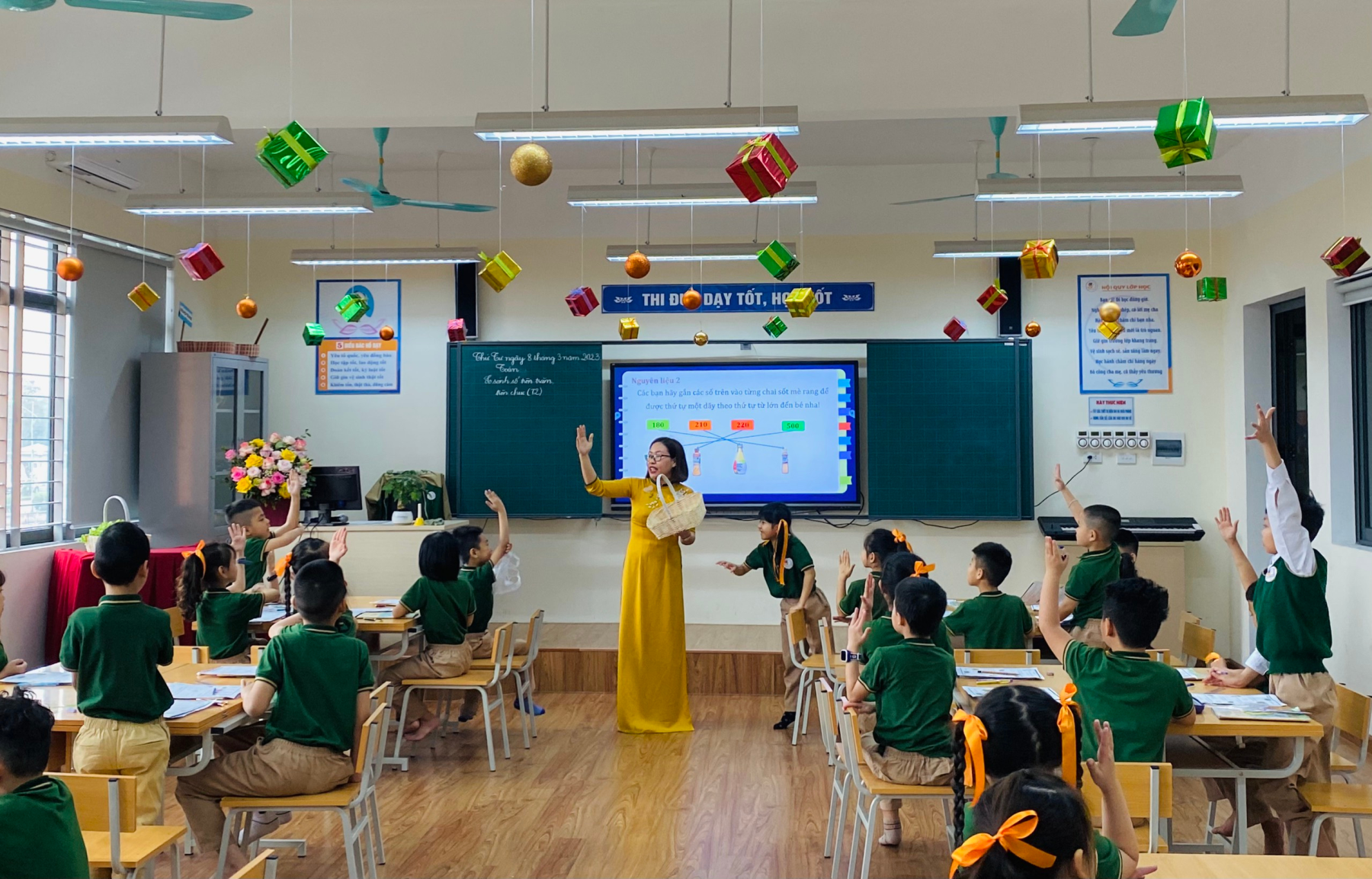 Tiết chuyên đề của cô thực hiện đúng ngày Quốc tế phụ nữ Việt Nam 8/3 cô đã khéo léo lựa chọn lồng ghép các hình thức dạy học giúp học sinh hoàn thành các bài tập theo phương pháp mới. Mỗi bài tập hoàn thành các con lại được thưởng một nguyên liệu để làm Salad tặng mẹ, học sinh hào hứng làm bài giao lưu tương tác cô trò rất sôi nổi.