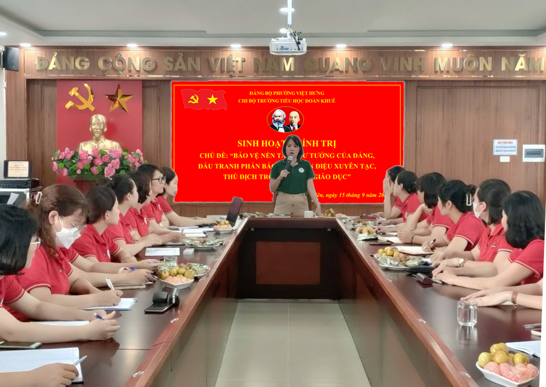 Tại buổi sinh hoạt chuyên đề, đ/c Trần Thị Phương Dung – Bí thứ Chi bộ, Hiệu trưởng nhà trường triển khai các tầm quan trọng, nhiệm vụ bảo vệ nền tảng tư tưởng của Đảng, đấu tranh phản bác các quan điểm sai trái trong ngành GD cũng như nhấn mạnh mỗi đảng viên phải có trách nhiệm, ý thức trước mọi âm mưu, thủ đoạn “diễn biến hòa bình”, các dấu hiệu “tự diễn biến, tự chuyển hóa”. Đồng chí cũng chỉ đạo, định hướng, hướng dẫn đảng viên sử dụng hiệu quả các trang mạng xã hội để thực hiện công tác tuyên truyền, nhắc nhở mỗi cán bộ, đảng viên khi tham gia, tương tác, chia sẻ bình luận, hưởng ứng, bài viết trên các trang mạng xã hội có trách nhiệm trước bản thân, trước pháp luật.