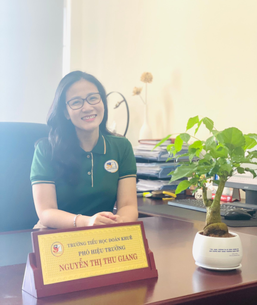Tháng 09 năm 2021, theo sự phân công và điều động của tổ chức, cô Giang chuyển về làm Phó Hiệu trưởng Trường tiểu học Đoàn Khuê- phường Việt Hưng. Đây là một ngôi trường mới, khang trang, sạch đẹp với đội ngũ giáo viên trẻ - năng động - tâm huyết với nghề. Là một cán bộ quản lý trẻ, cô luôn dành nhiều thời gian để nghiên cứu, học hỏi những anh chị quản lý đi trước, tích cực trau dồi chuyên môn, nghiệp vụ- hoàn thiện bản thân mình. Cô vừa tốt nghiệp lớp Trung cấp lý luận chính trị và đang tiếp tục theo học lớp Thạc sỹ để nâng cao trình độ Quản lý giáo dục, vững vàng trong công tác với nhiệm vụ mình đang đảm nhận. Gắn bó tại một ngôi trường mới được thành lập với biết bao nhiêu khó khăn và thử thách nhưng chúng tôi chưa bao giờ thấy cô Giang cảm thấy chán nản hay kêu ca bất kì điều gì. Cô luôn vui vẻ, nhiệt huyết, có năng lượng rất tích cưc và luôn đồng hành cùng tập thể, xây dựng một ngôi trường văn minh- hạnh phúc và chuyên nghiệp.