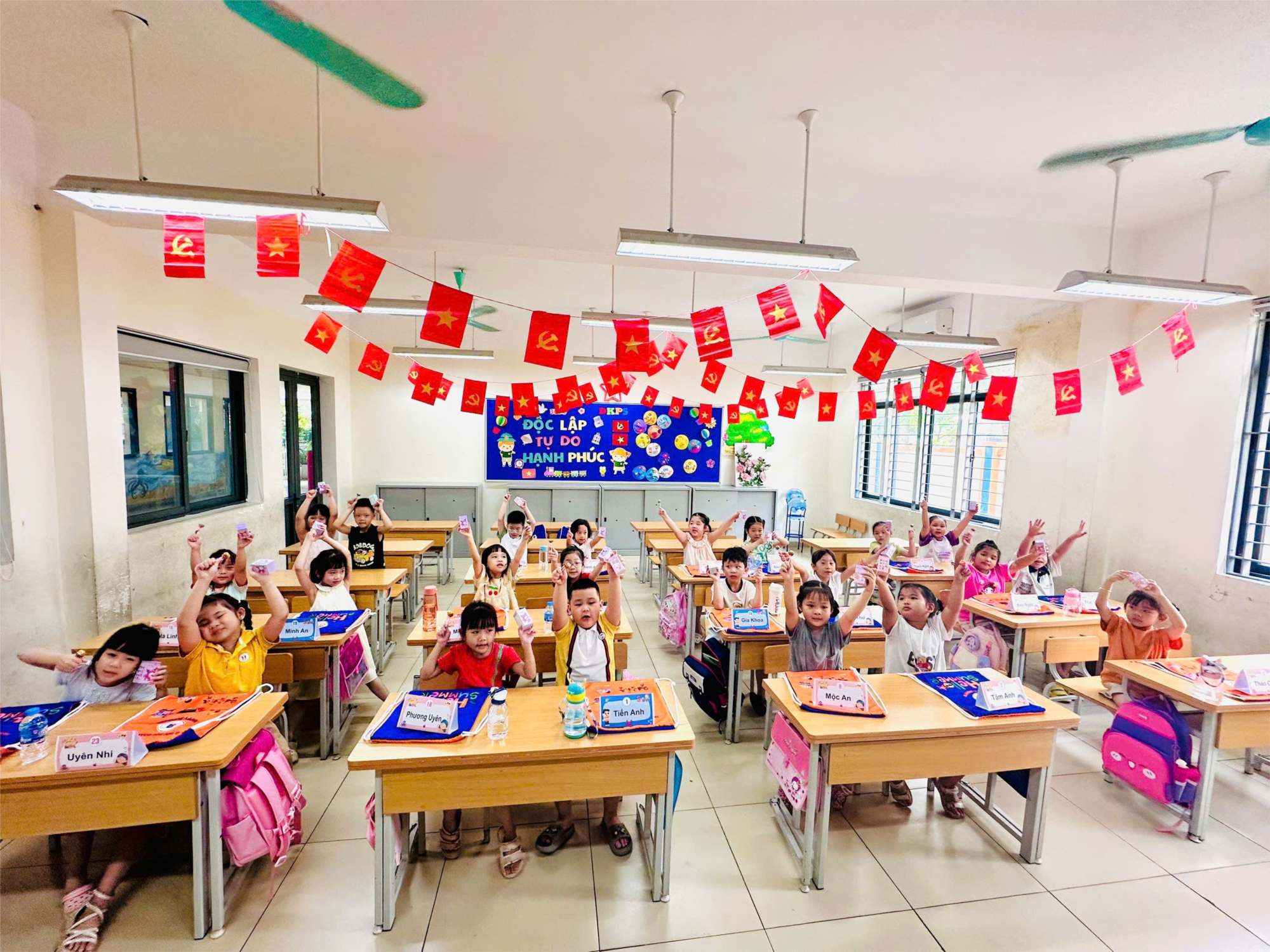 Từ những bước đầu bỡ ngỡ, các con đã dần thích nghi với nề nếp học tập: biết xếp hàng ngay ngắn, ngồi học đúng tư thế, lắng nghe cô giảng bài, giơ tay phát biểu và mạnh dạn chia sẻ ý kiến. Những kỹ năng tưởng chừng đơn giản nhưng lại là tiền đề quan trọng giúp trẻ tự tin bước vào môi trường học tập mới – nơi sự tự lập và chủ động được đề cao.
