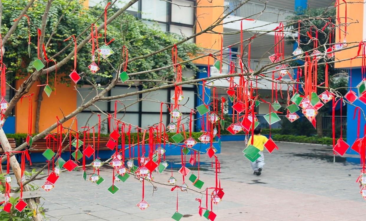 “ Năm mới gia đình luôn mạnh khỏe, hạnh phúc”, “ Con ước mình sẽ được điểm cao trong kì thi” hay “ Được nhiều lì xì” … là những lời nhắn được các bạn học sinh của DKPS ghi và treo lên cây điều ước.