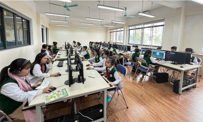 Sau 20 vòng thi tự luyện, học sinh trường Tiểu học Đoàn Khuê bước vào kỳ thi IOE cấp Quận với sự tự tin, nghiêm túc cùng sự hướng dẫn tận tình từ Ban giám hiệu nhà trường cũng như các cô giáo của tổ Tiếng Anh. Kỳ thi diễn ra trực tuyến trong 30 phút, với nội dung bám sát chương trình của Bộ Giáo dục, kiểm tra toàn diện các kỹ năng Nghe, Viết, Đọc hiểu. Đề thi không chỉ tập trung vào ngữ pháp, từ vựng mà còn tích hợp kiến thức liên môn, đánh giá khả năng vận dụng ngôn ngữ trong thực tế.