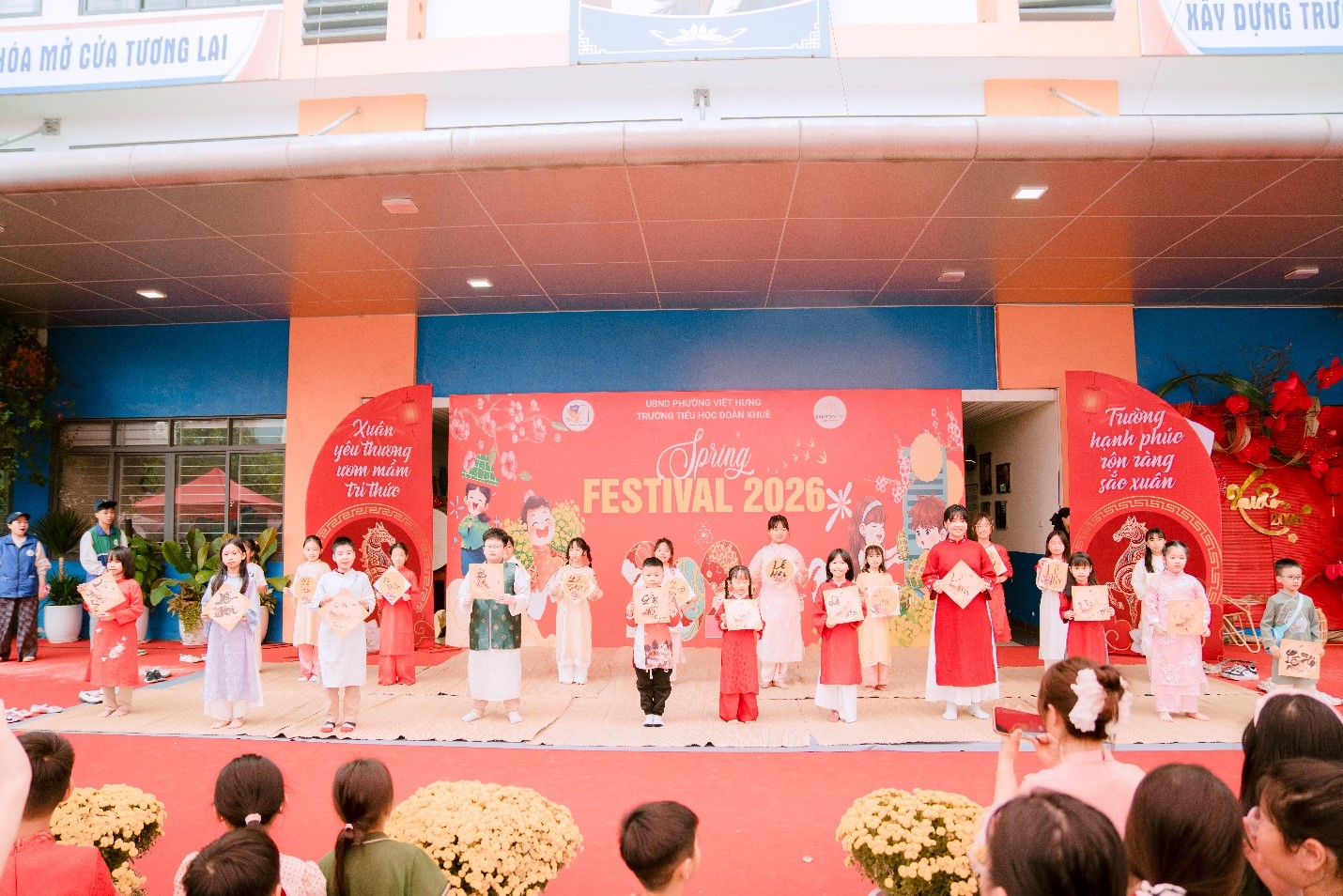 Trong không khí rộn ràng chào đón mùa xuân mới, Trường Tiểu học Đoàn Khuê đã tổ chức thành công Hội Xuân – SPRING FESTIVAL 2026 với nhiều hoạt động phong phú, hấp dẫn và đậm đà bản sắc dân tộc. Chương trình không chỉ mang đến niềm vui, tiếng cười cho học sinh mà còn tạo cơ hội để các em được trải nghiệm, khám phá và thêm yêu những giá trị truyền thống của quê hương.