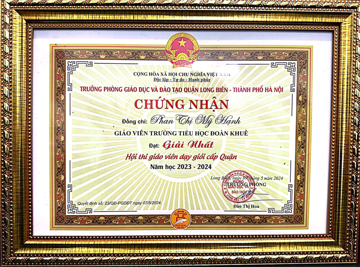 CÔ GIÁO PHAN THỊ MỸ HẠNH THAM GIA CUỘC THI GIÁO VIÊN DẠY GIỎI CẤP QUẬN NĂM HỌC 2023 - 2024 GIỎI
