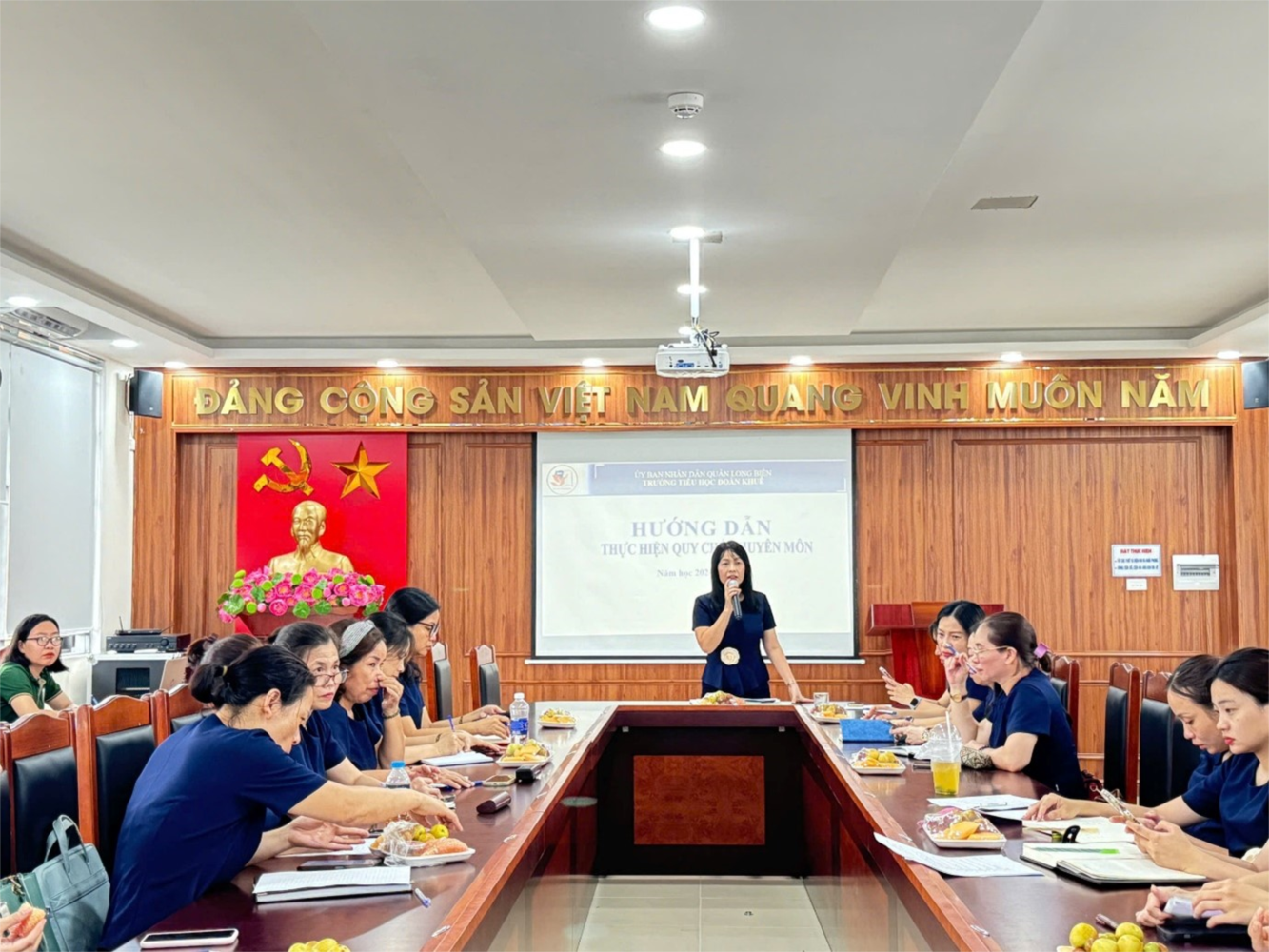 Tại buổi họp, đồng chí Hà Thị Diệu Thúy - Phó Hiệu trưởng nhà trường đã trình bày chi tiết các nhiệm vụ trọng tâm và quy chế chuyên môn của năm học mới. Bên cạnh việc triển khai các quy định chung, nhà trường cũng đã đưa ra nhiều sáng kiến mới nhằm nâng cao chất lượng dạy và học. Đặc biệt, đồng chí đã nhấn mạnh việc sử dụng hồ sơ điện tử trong năm học tới nhằm thực hiện hiệu quả công tác chuyển đổi số trong giáo dục.