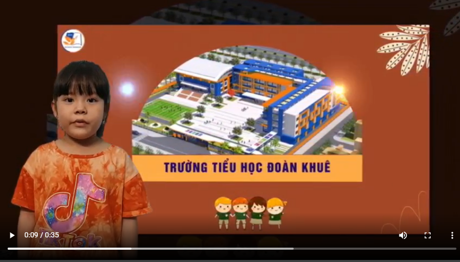Nhân dịp kỉ niệm 98 năm ngày sinh của Đại tướng Đoàn Khuê hội đồng Đội nhà trường phát động phong trào hưởng ứng tuần lễ kỉ niệm ngày sinh của Đại tướng (20/10/1923) các con lại một lần nữa có cơ hội tìm hiểu về cuộc đời và sự nghiệp của ông. Sau khi tìm hiểu qua những hình ảnh trong clip các con lớp 1A2- học sinh bé nhất trường cảm thấy rất vui và tự hào. Trên khuôn mặt ngây thơ, rạng ngời và thích thú khi biết mình là học sinh của một ngôi trường mới mang tên của vị Đại tướng tài ba. Đại tướng là tấm gương sáng để thầy và trò cùng nhau phấn đấu thi đua: “Thầy dạy tốt – trò học tốt” Niềm tự hào được thể hiện qua những mong muốn, ước mơ mà các con chia sẻ: “ Con Hoàng Vân Hà nói: Con cảm thầy rất tự hào và vinh dự khi được làm học sinh ở một ngôi trường mang tên Đại tướng Đoàn Khuê. Mặc dù con chưa được đi học trực tiếp nhưng con mong một ngày sẽ rất gần đại dịch được kiểm soát con được đi học. Ở nơi đó, con sẽ được học tập, vui chơi cùng bạn bè. Con xin hứa sẽ học tập chăm ngoan và là học sinh gương mẫu xứng đáng là học sinh Đoàn Khuê”. Ngoài ra con:“Bùi Nguyễn Hà Chi cũng có mong ước chóng được đến trường để học tập cùng cô và các bạn và cố gắng chăm ngoan học giỏi để xứng đáng là học sinh trường Tiểu học Đoàn Khuê”. Qua chia sẻ và bày tỏ cảm xúc của các con cô tin rằng được học tập dưới ngôi trường mang tên Đại tướng anh hùng các con luôn có ý thức luyện rèn, hoàn thiện bản thân để xứng đáng là học sinh trường Tiểu học Đoàn Khuê. Nơi đây các con được: ĐAM MÊ KHÁM PHÁ- KHẲNG ĐỊNH BẢN THÂN.