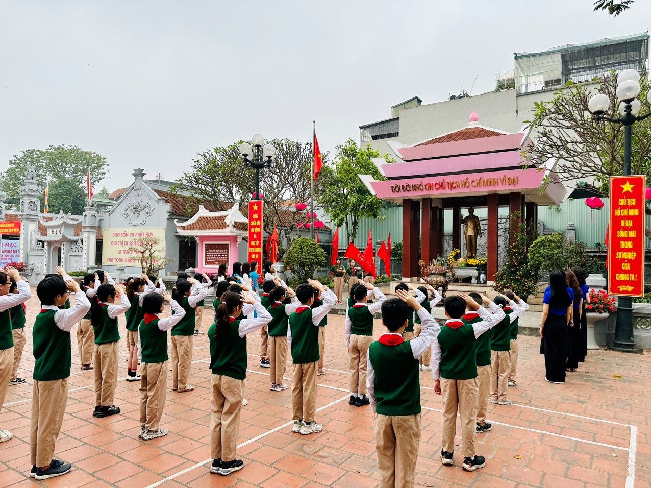 Kết nạp xong các con HS được BGH và các cô cho vào thắp hương Đình Trường Lâm, nơi Bác Hồ đã ghé thăm.
