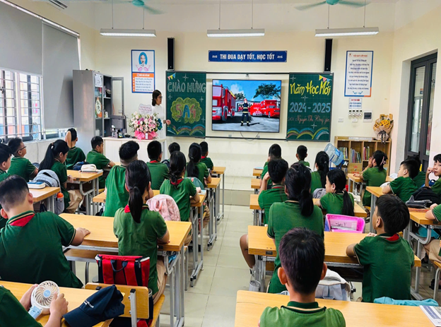 Các giáo viên đã nhiệt tình hướng dẫn các em về cách nhận diện các nguy cơ cháy nổ trong cuộc sống hằng ngày, đồng thời chia sẻ những biện pháp phòng ngừa hiệu quả. Những hình ảnh sinh động và tình huống mô phỏng thực tế đã giúp các em dễ dàng ghi nhớ những kiến thức cần thiết. Đặc biệt, các em còn biết cách sử dụng bình chữa cháy và các biện pháp thoát hiểm an toàn trong tình huống khẩn cấp.