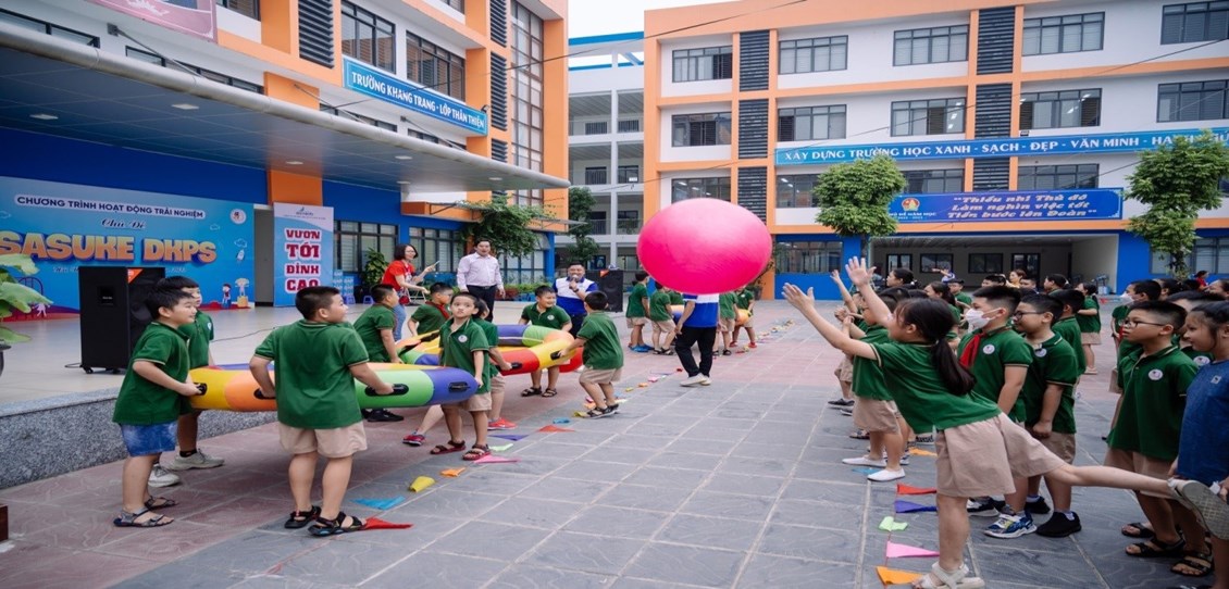 Cuối tháng chín năm ngoái, chúng em được tham gia hội nước SASUKE tại sân trường.